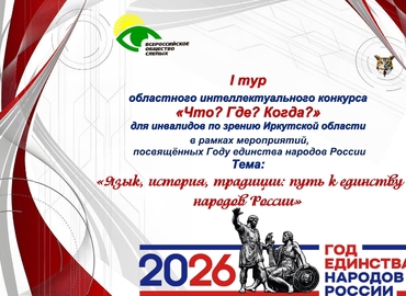В Иркутской РОО ВОС стартовал новый сезон интеллектуально‑познавательной игры «Что? Где? Когда?».На протяжении нескольких лет мероприятие зарекомендовало себя как эффективный инструмент социокультурной реабилитации и пользуется популярностью среди членов организации.Игра включает четыре тура и проводится один раз в квартал на базе местных организаций Иркутской РОО ВОС. Её главная цель — развитие и сохранение интеллектуальных способностей участников, а также создание условий для социокультурной реабилитации.4 марта 2026 года состоялся I тур игры, организованный в рамках мероприятий, посвящённых Году единства народов России, на тему «Язык, история, традиции: путь к единству народов России».Вопросы, предложенные участникам, были направлены на расширение кругозора и включали актуальные материалы по истории и традициям народов России. В рамках Года единства народов России такая тематика приобрела особое значение: игра помогла участникам осознать, как многовековое взаимодействие культур и сохранение языкового наследия формируют единую духовную основу нашего общества, объединяя людей разных национальностей вокруг общих ценностей.В турнире приняли участие 9 команд — по 6 человек в каждой. Всего в игре участвовало 54 человека — членов Иркутской РОО ВОС. В состав команд вошли как инвалиды по зрению, так и другие представители организации, состоящие на учёте в МО ВОС.Проведение интеллектуальной игры даёт возможность каждому внести свой вклад в общий результат, аккумулирует знания игроков, создаёт условия для взаимодействия и взаимопомощи, учит высказывать и отстаивать свою точку зрения, а также способствует развитию у участников навыков командного взаимодействия, умения слышать собеседника и совместно искать ответы на поставленные вопросы.Определение победителей и призёров игры осуществляется после проведения четырёх игр — в конце года. По итогам каждого тура формируется промежуточная таблица результатов, где фиксируется количество правильных ответов, данных командой в каждом туре.На финальном этапе все результаты команд за I, II, III и IV туры суммируются, на основании чего составляется общая рейтинговая таблица, отражающая суммарное количество правильных ответов за весь игровой сезон.В случае равенства итогового количества баллов у двух или более команд для определения победителя проводится дополнительный решающий тур. Вопросы для него подготавливаются организаторами заранее и не входят в основной перечень вопросов сезонных игр.Такой формат позволяет объективно оценить стабильность и уровень подготовки команд на протяжении всего года, а не только по результатам одной игры.Второй тур областной интеллектуальной игры «Что? Где? Когда?» состоится 4 июня 2026 года.